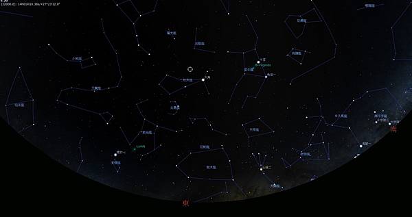 2017/04/19東方星空。截圖自:Stellarium星圖軟體