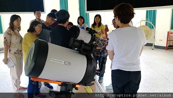 這次我們來到了參與天文館星光小學計畫的東里國小,東里國小利用上宸光學的Celestron Advanced VX 8" EdgeHD自動導入天文望遠鏡、CELESTRON SKYSYNC GPS接收器、CELESTRON SkyPortal模組和UPE-340PL 天文望遠鏡用手機攝影套筒來幫助小朋友們認識星空。首先,就讓上宸光學來帶老師們認識這些器材。
