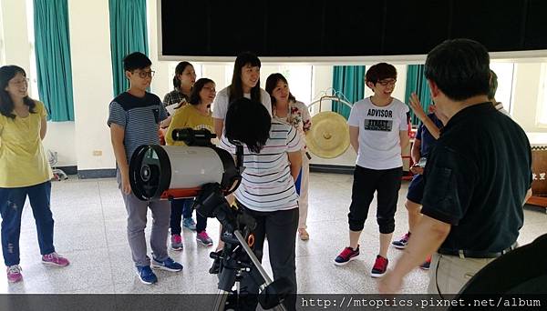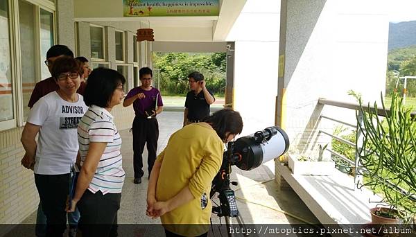 這次上宸光學參與了星光國小的計畫,將一般只有在專業星空攝影師才看得到的器材搬入學校,並作了詳細的示範教學,讓老師和學生都能夠參與,並體驗了望遠鏡以及利用手機來做操控和攝影,希望這些望遠鏡器材對於他們不再只是遠觀而不可燮玩焉,而是真正的將天文帶入星光小學,並讓師生可以擁有徜徉在星空下的經驗。