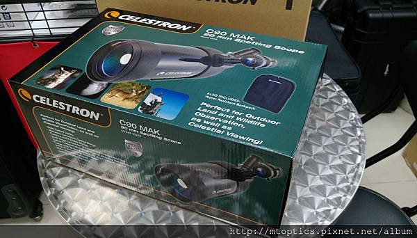 這次要開箱的望遠鏡為CELESTRON C90MAK 攜帶型折反射式天文望遠鏡,這台望遠鏡為初學者非常容易上手的一個機台,除了輕攜帶方便外,他長焦的特性,也使我們得到足夠大的倍率,再搭配32mm目鏡之後,倍率為39倍! 是一組操作簡單、好攜帶的天文/觀景/賞鳥多功能望遠鏡,寬廣的視野具相當優良的望遠影像。