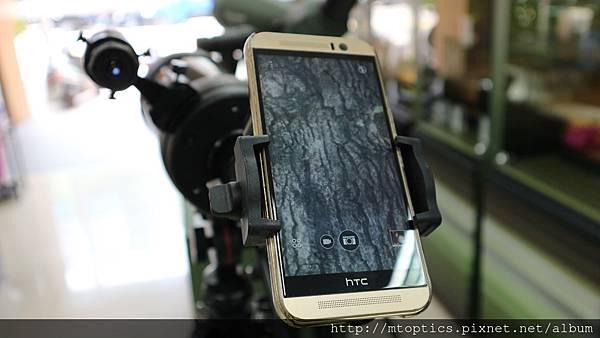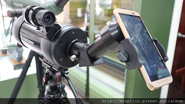 將他固定在手機上,對準鏡頭,並利用套環套在目鏡上,就可以利用手機作攝影了: