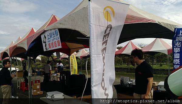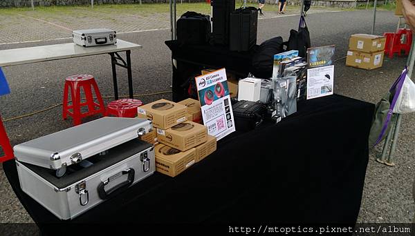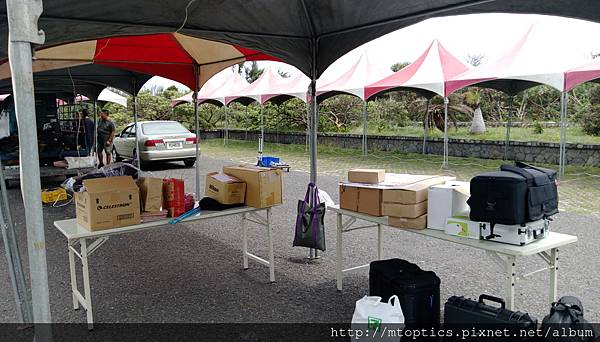 到了現場,我們是第一個到的,開始卸貨和擺攤,這次上宸帶了許多望遠鏡和周邊商品。