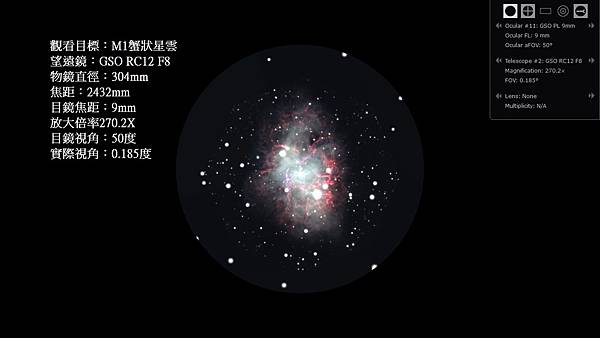 大口徑、長焦距最適合觀看行星狀星雲。在業餘的大型望遠鏡底下,行星狀星雲的核心仍然昏暗不易辨別。觀看行星狀星雲建議用口徑280mm以上,焦距在2000mm以上的大型望遠鏡。