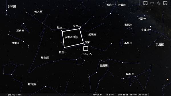 NGC7479視角大小4.1X3.1角秒平方,視星等11.6,口徑10公分以下的望遠鏡無法看到,至少要20公分以上的望遠鏡才可以在少量的光害下看到NGC7479棒旋星系。