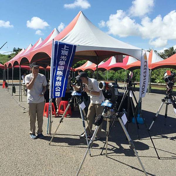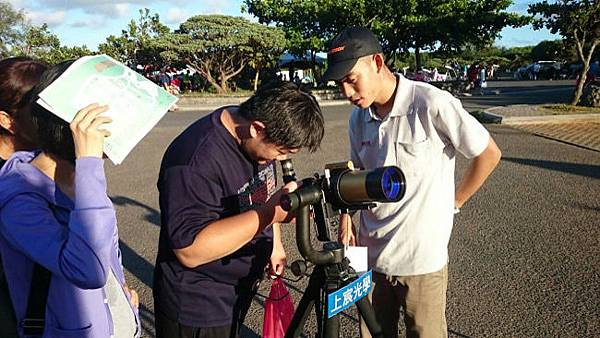 CORONADO SOLARMAXII60-10是專門看太陽的日珥觀察望遠鏡,藉由H-alpha濾鏡將太陽邊緣不斷變化的日珥、米粒組織以及其他驚人的表面細節清楚呈現,讓前來體驗的民眾驚呼連連。CELESTRON NEXSTAR 5SE套組結合125mm的大口徑望遠鏡與輕便的經緯儀,簡易的中文化操作介面又可以讓初學者輕易上手。而Advanced VX 8" EdgeHD更擁有高精度的追蹤與高解析的成像品質,除了目視觀測還能勝任天文攝影的任務,我們旁邊就有一位葉先生使用在上宸購買的這套儀器在做天文攝影喔~