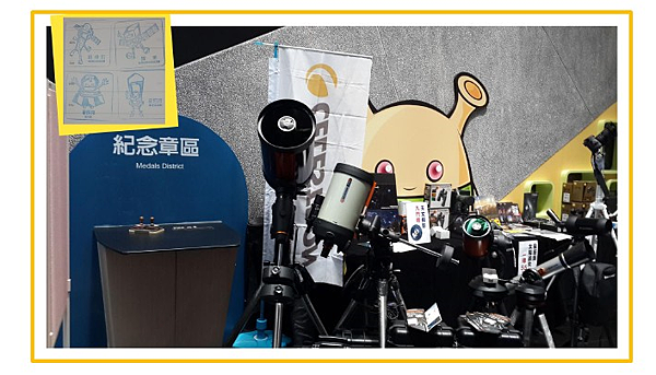 這次上宸的攤位地點非常顯眼,就在星象館一進門之後的左手邊,而這個位置剛好是蓋章區,也就是說,蓋章的位置旁邊就是我們的望遠鏡呢!