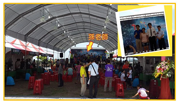 除了星象館有舉辦航海王的首映以外,在南瀛天文館的廣場上也有許多天文教育單位來協助擺攤,而就在小編去廣場上看看的時候,此時舞台上出現了─孫老師!!事實上,孫老師也是此次活動請來演講的講者之一,第一天下午孫老師給了一場演講「在爛泥溝渠中仰望星空」 內容主要描述了這幾年他所主導發展的天文台,雖然這些天文台都不大,卻為當地的天文教育注入了新生命。在廣場上人群簇擁著孫老師,看得出來孫老師真是擁有一大群一大群的粉絲呢! (因為人太多, 小編想拍照也擠不進去XD)