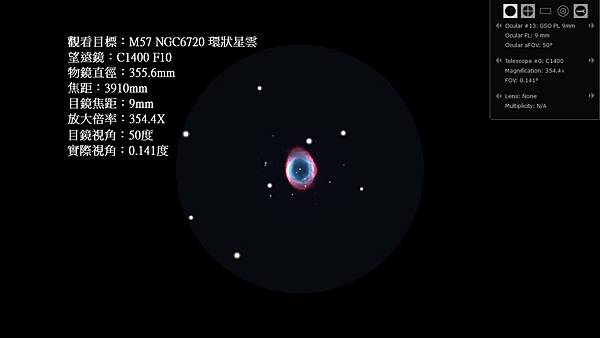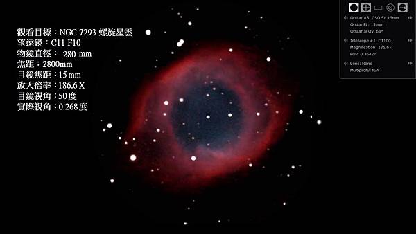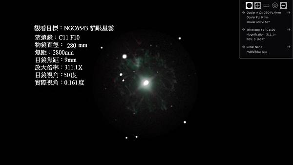 大口徑、長焦距最適合觀看行星狀星雲。在業餘的大型望遠鏡底下,行星狀星雲的核心仍然昏暗不易辨別。觀看行星狀星雲建議用口徑280mm以上,焦距在2000mm以上的大型望遠鏡。